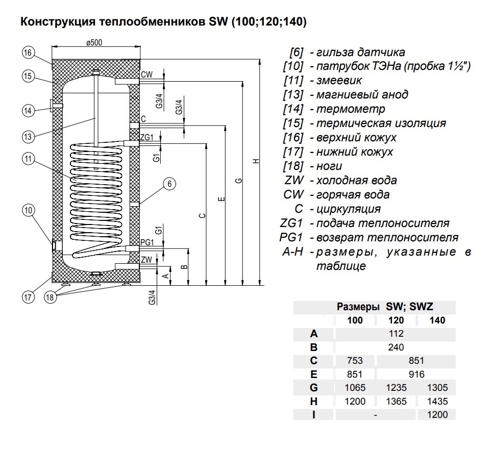 Технические характеристики бойлера KOSPEL SW 140