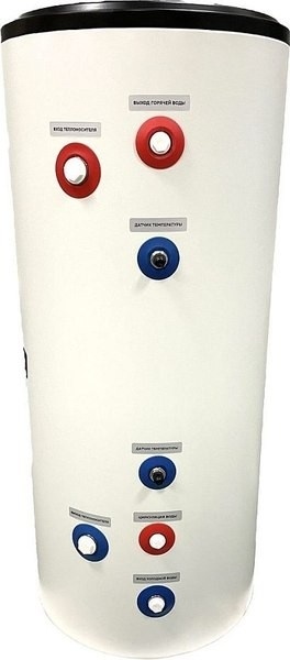 - Две гильзы для температурных датчиков позволяют контролировать температуру воды на разных уровнях бойлера или организовать подключение к двум источникам тепла, например, к газовому и твердотопливному котлу, обеспечивая гибкость и удобство управления системой.